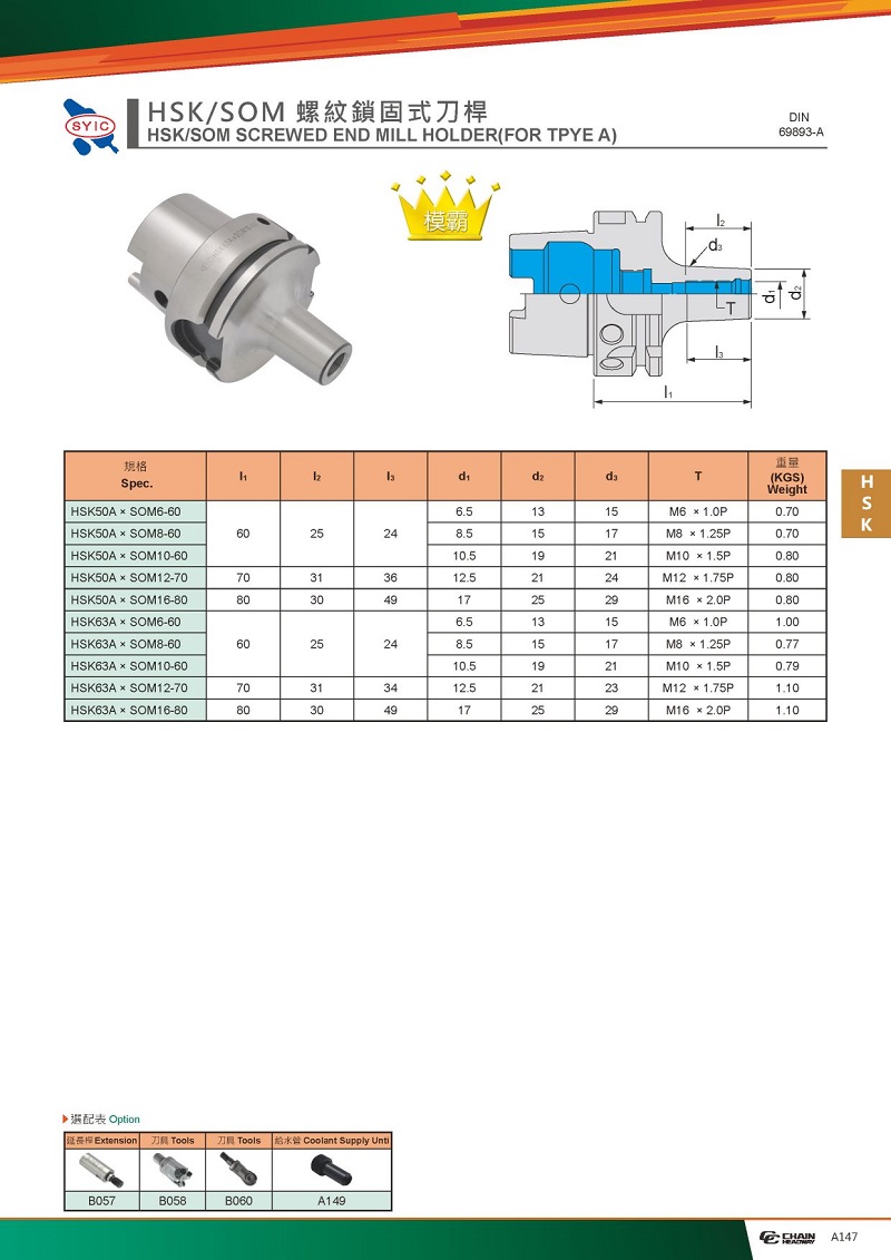 HSK/SOM螺紋鎖固式刀桿