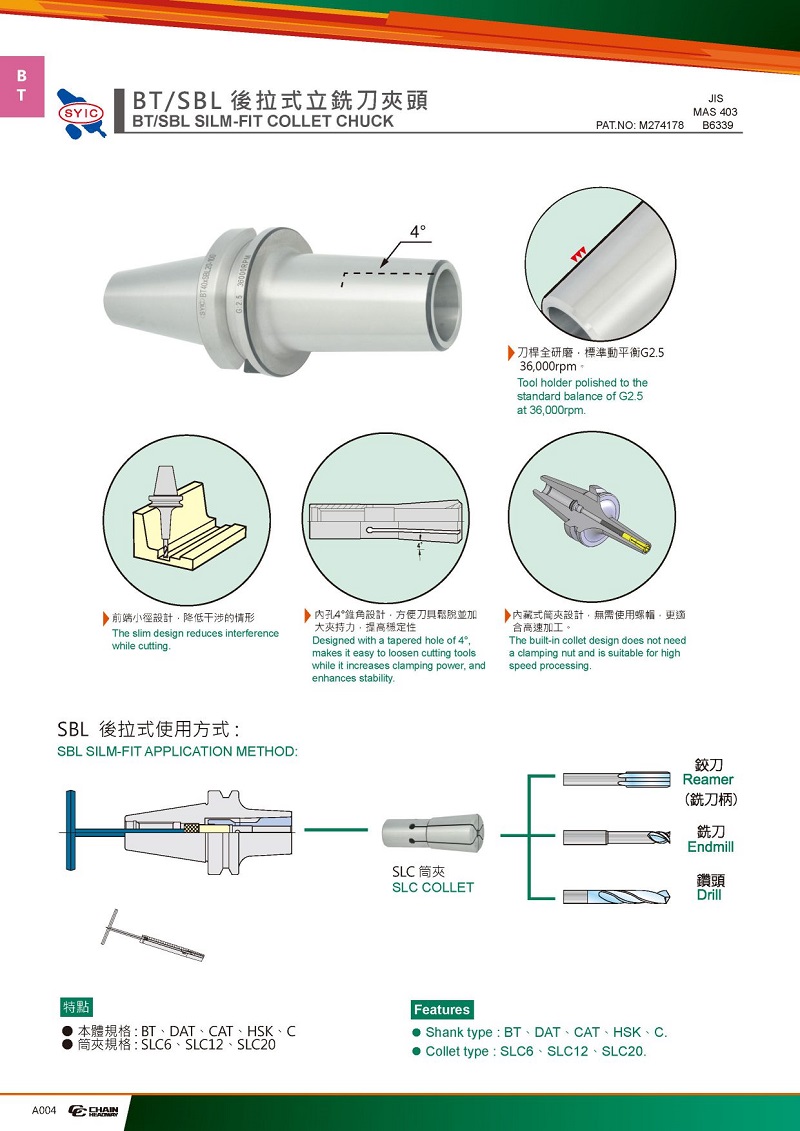 臺灣正河源 SYIC BT/SBL后拉式立銑刀夾頭柄