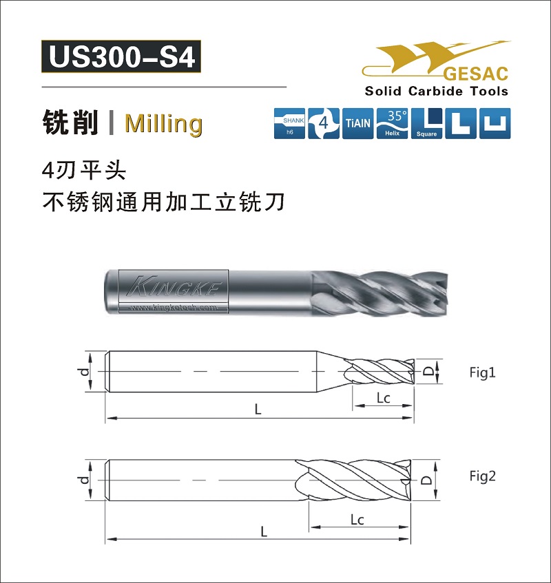 金鷺GESAC-US300系列不銹鋼專用立銑刀