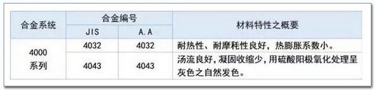 通常硅含量在4.5-6.0%之間,含硅量較高強度就相對較高,4000系列鋁棒代表為4A01、4000系列的鋁板屬于含硅量較高的系列。湯流好,凝固收縮少,屬建筑用材料,機械零件,鍛造用材,焊接材料; 熔點低,耐蝕性好,具有耐熱、耐磨的特性。