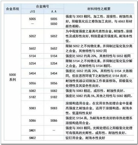 在手機上常用的是5052,為中程度強度之具代表性合金,耐蝕性、溶接性及成形性好,特別是疲勞強度高,耐海水性佳,常用來做強度要求高的產(chǎn)品,但其著色效果較不理想,適合做噴砂工藝,不適合做化學打沙、霧面等,主要使用鑄造成型的成型方式,不適合擠壓成型。
