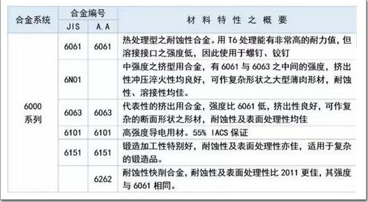 6XXX 表示是鋁-鎂-硅合金系列,如6061、6063