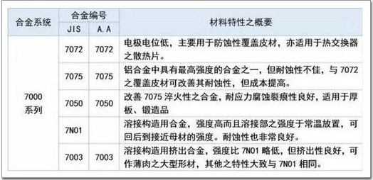 主要含有鋅元素,7000系列鋁合金代表7075 。也屬于航空系列,是鋁鎂鋅銅合金,是可熱處理合金,屬于硬鋁合金,有好的耐磨性。 目前基本依靠進口,我國的生產(chǎn)工藝還有待提高。