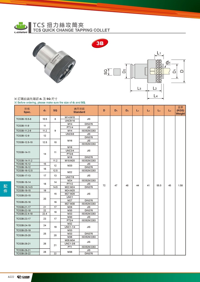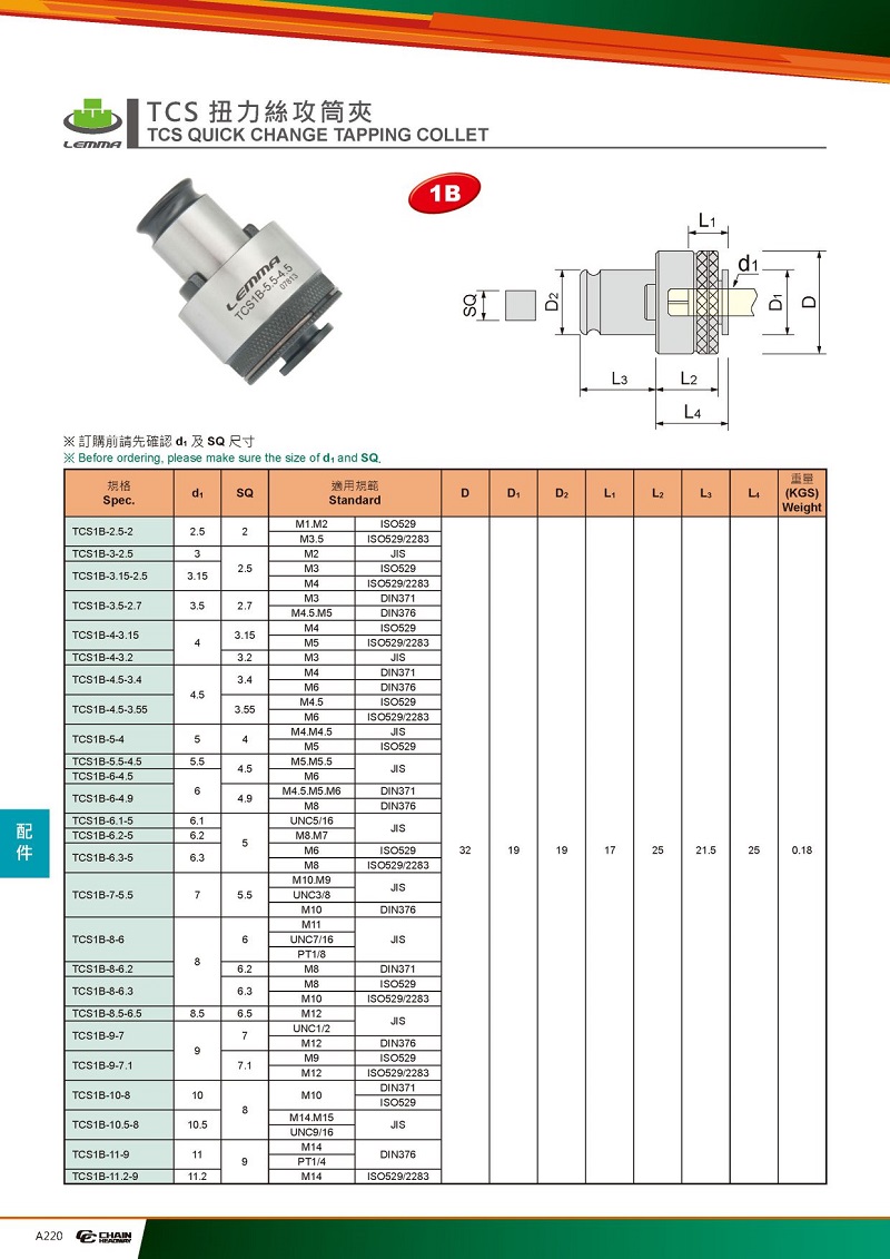 TCS扭力絲攻筒夾1B 2B 3B 適配扭力攻絲刀柄使用的