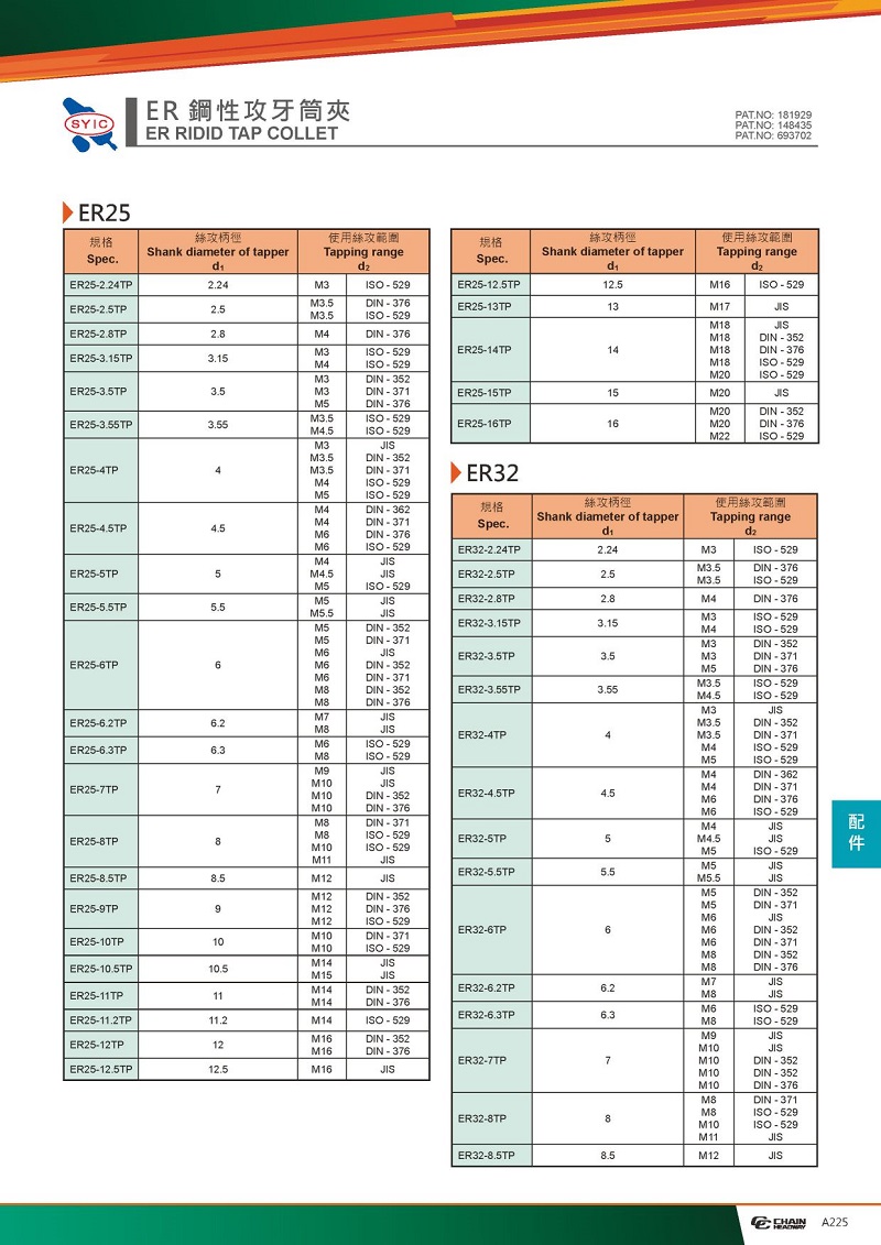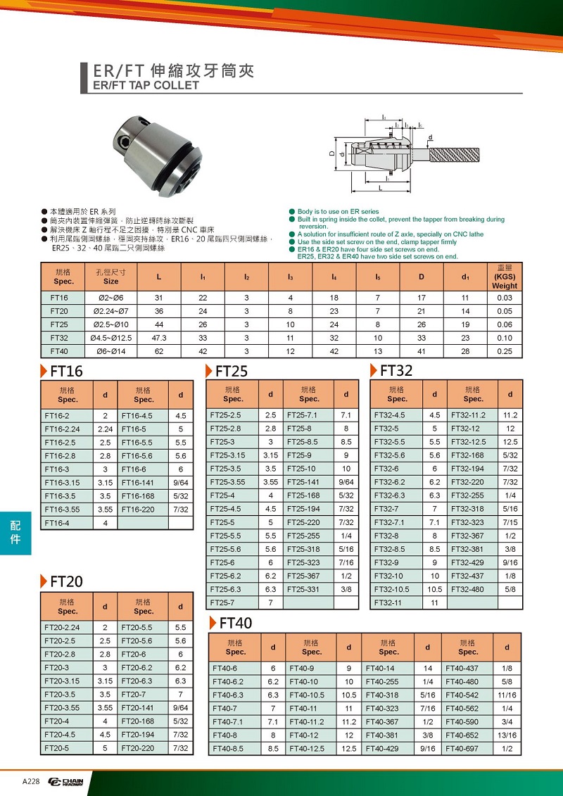 ER剛性攻牙筒夾的尺寸規(guī)格