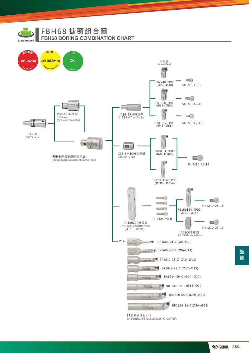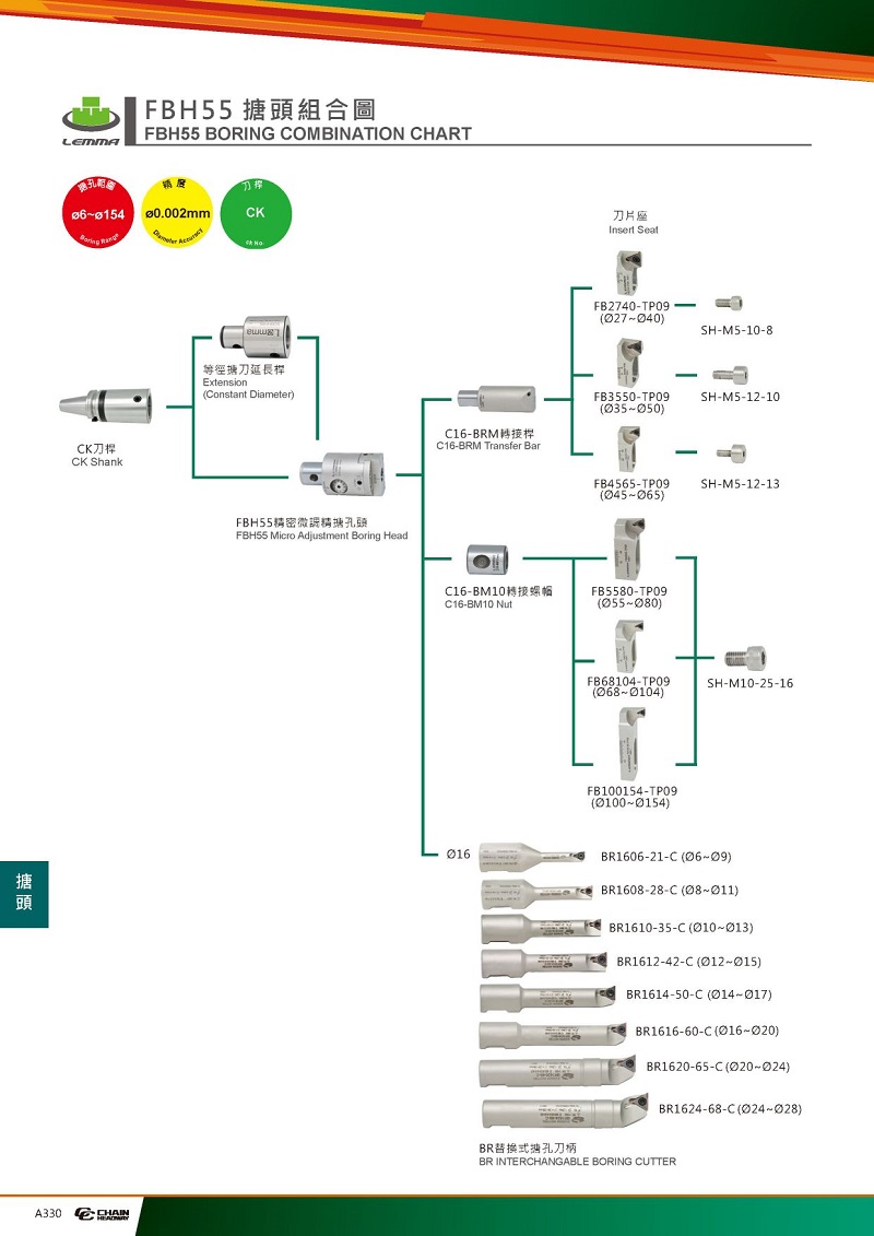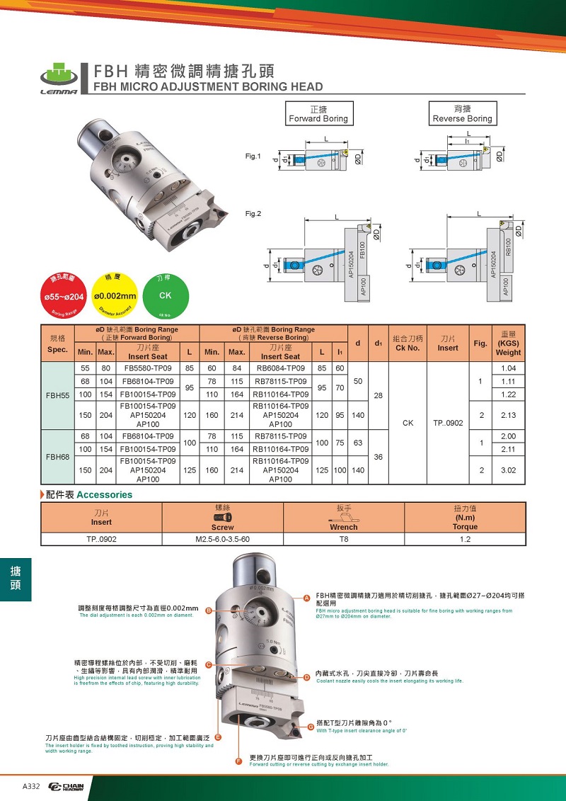 1. FBH密微調(diào)鏜刀體適用于切削鏜孔,鏜孔范圍φ27-φ204均可搭配選用;