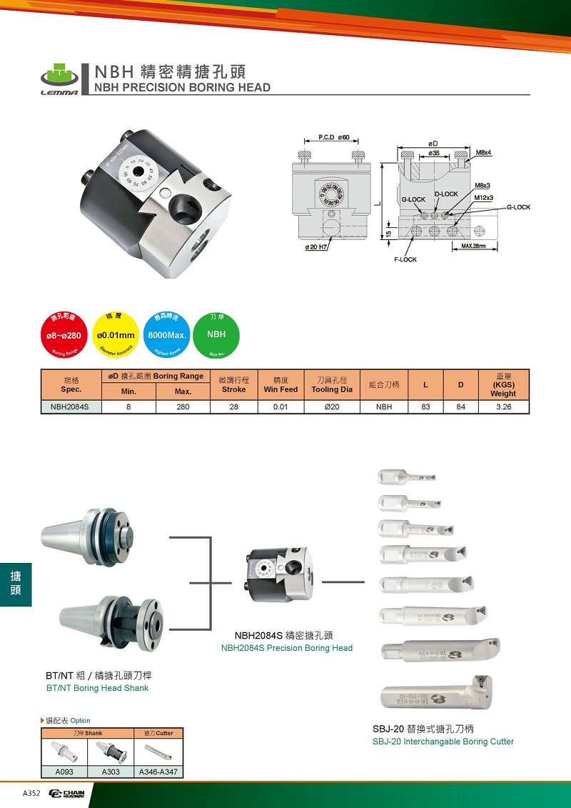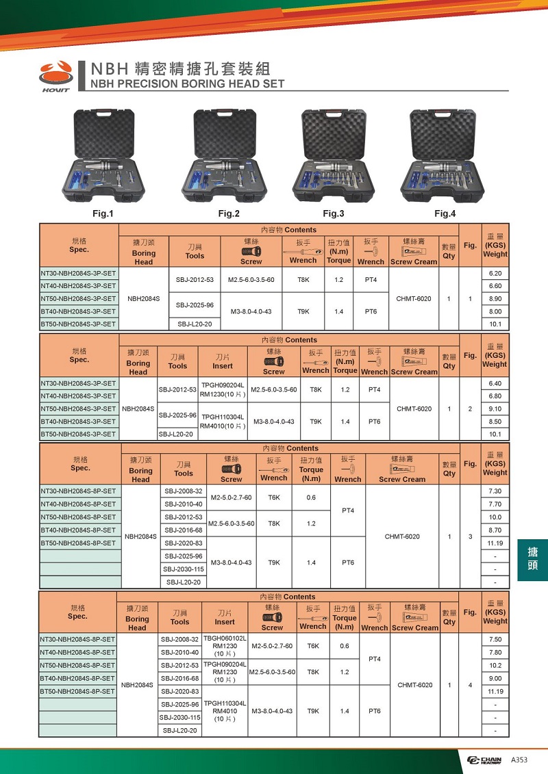 臺(tái)灣正河源BT-NBH2084鏜刀組合如下: