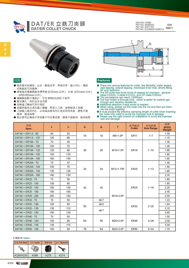 2.彈性筒夾偏擺有標(biāo)準(zhǔn)級(jí)(0.02mm以內(nèi)),A級(jí)(0.01mm以內(nèi)),UP級(jí)(0.005mm以內(nèi))