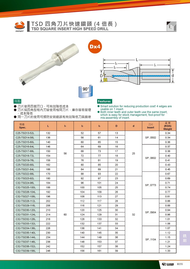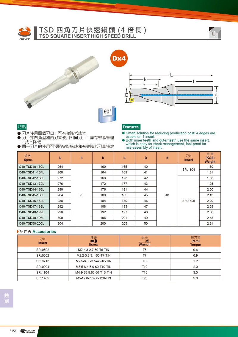 TSD四角刀片快速鉆頭*4D倍徑