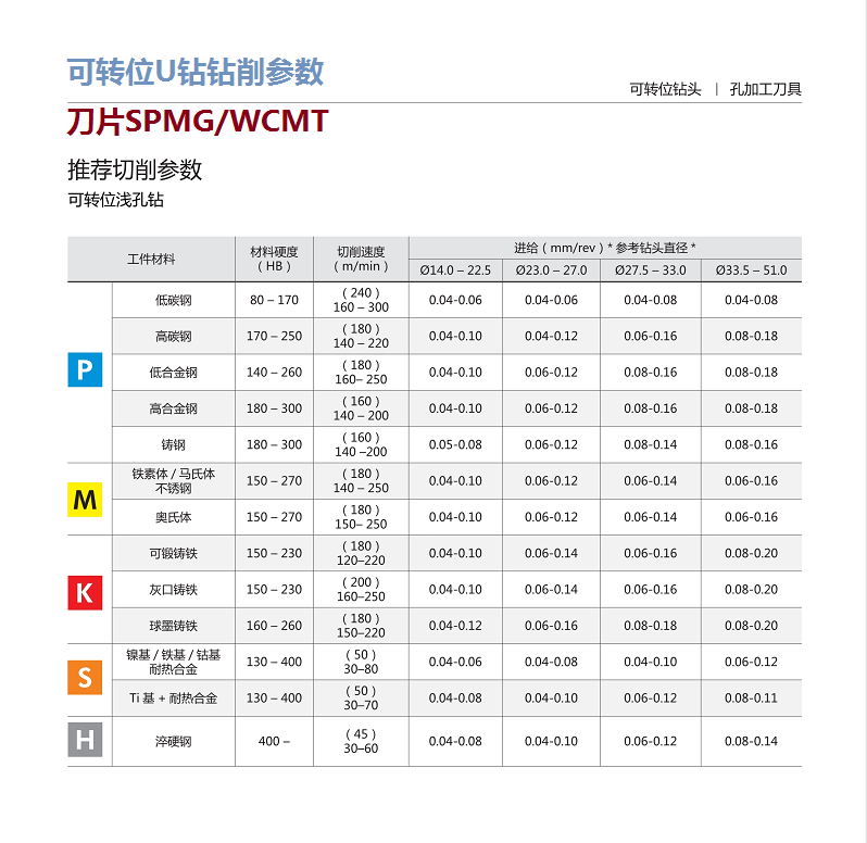 ------ 適用P(鋼) M(不銹鋼) K(鑄鐵) 等材料的孔加工