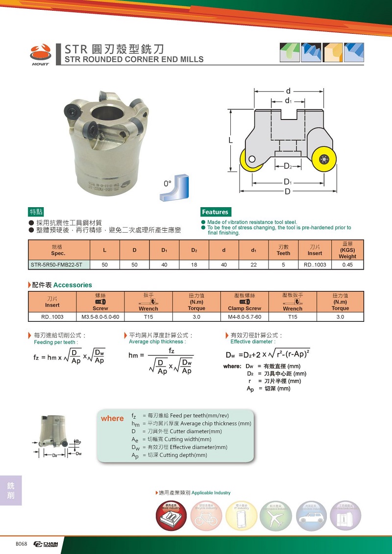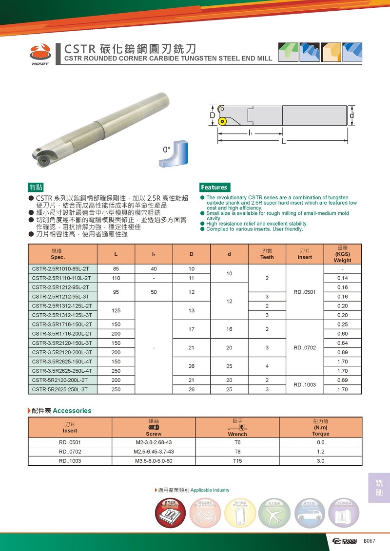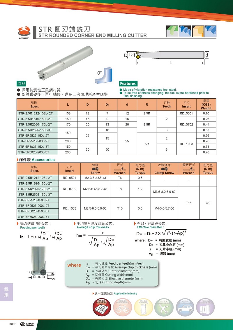 STR圓刃端銑刀(工具鋼、鎢鋼本體)