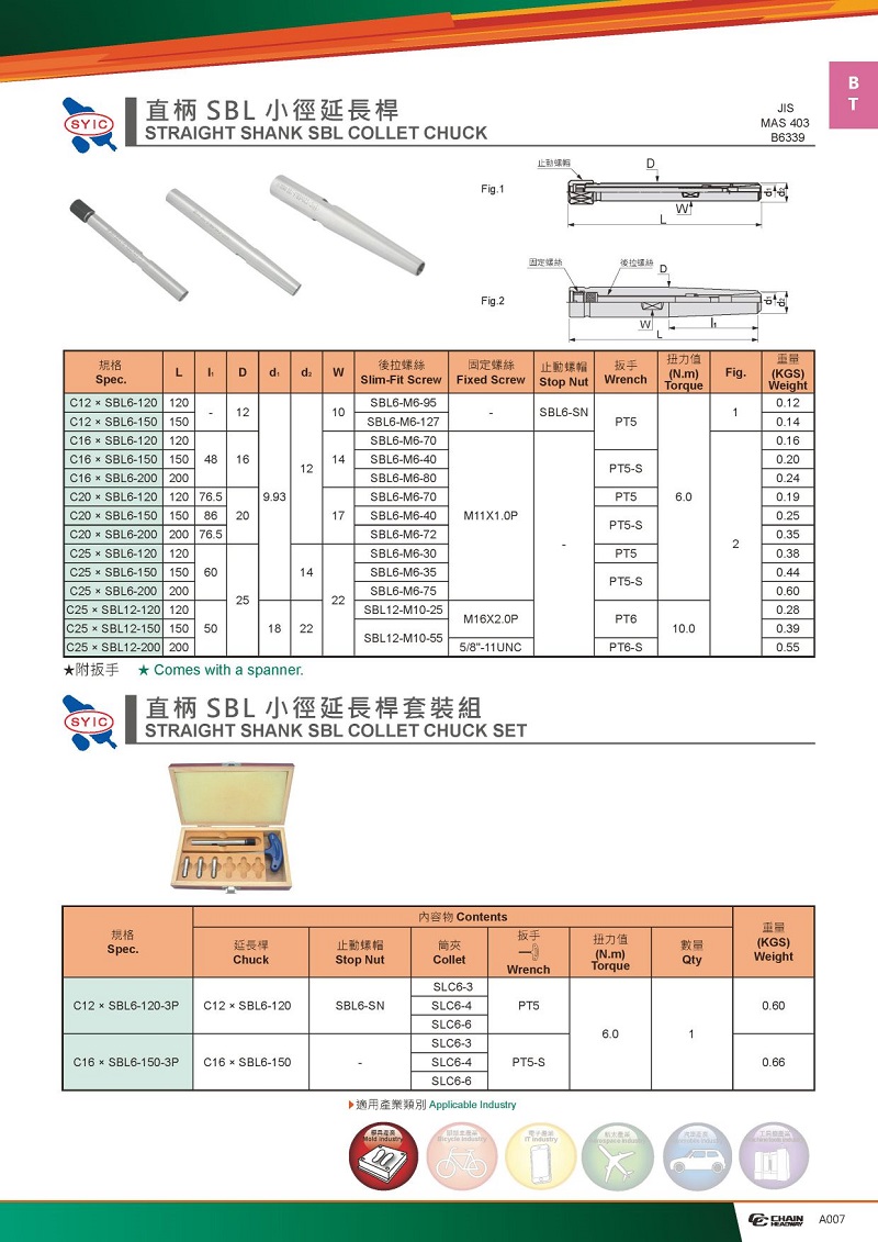 例:C20-SBL6-200 (夾持柄徑-后拉式筒夾規(guī)格-整體長(zhǎng)度)