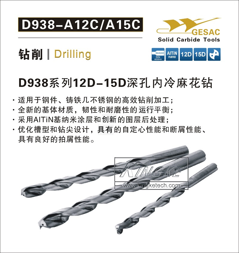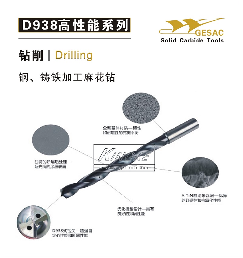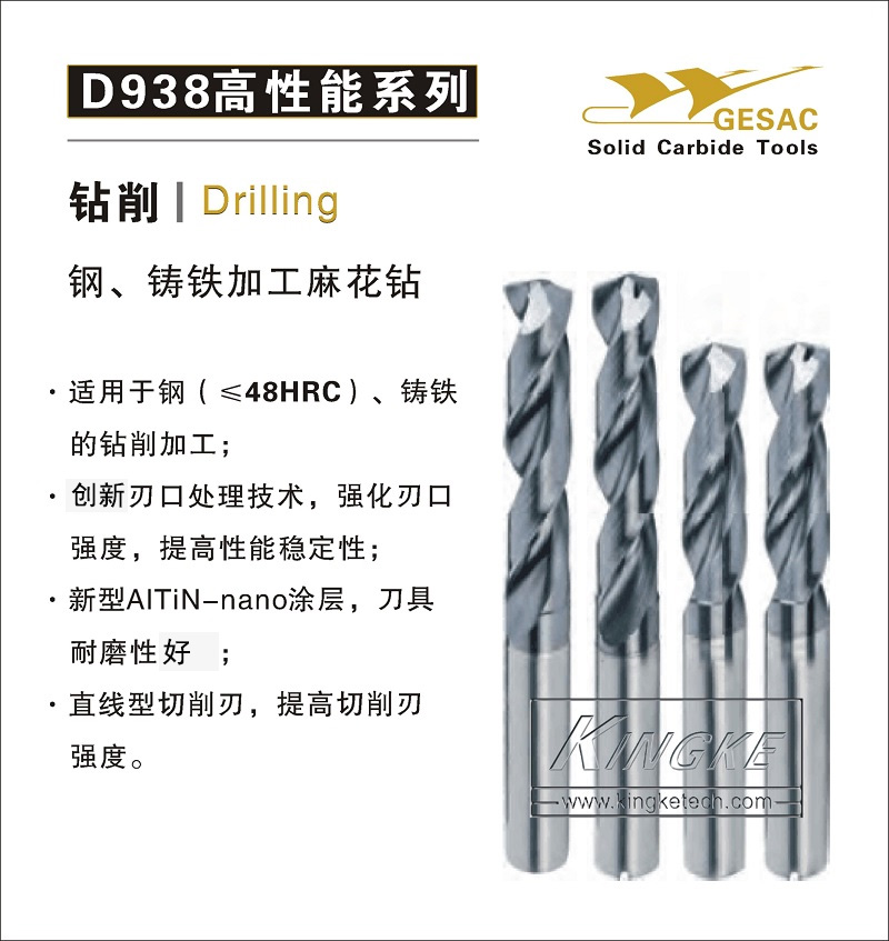 高硬鋼、鑄鐵用高性能鉆頭-D938系列