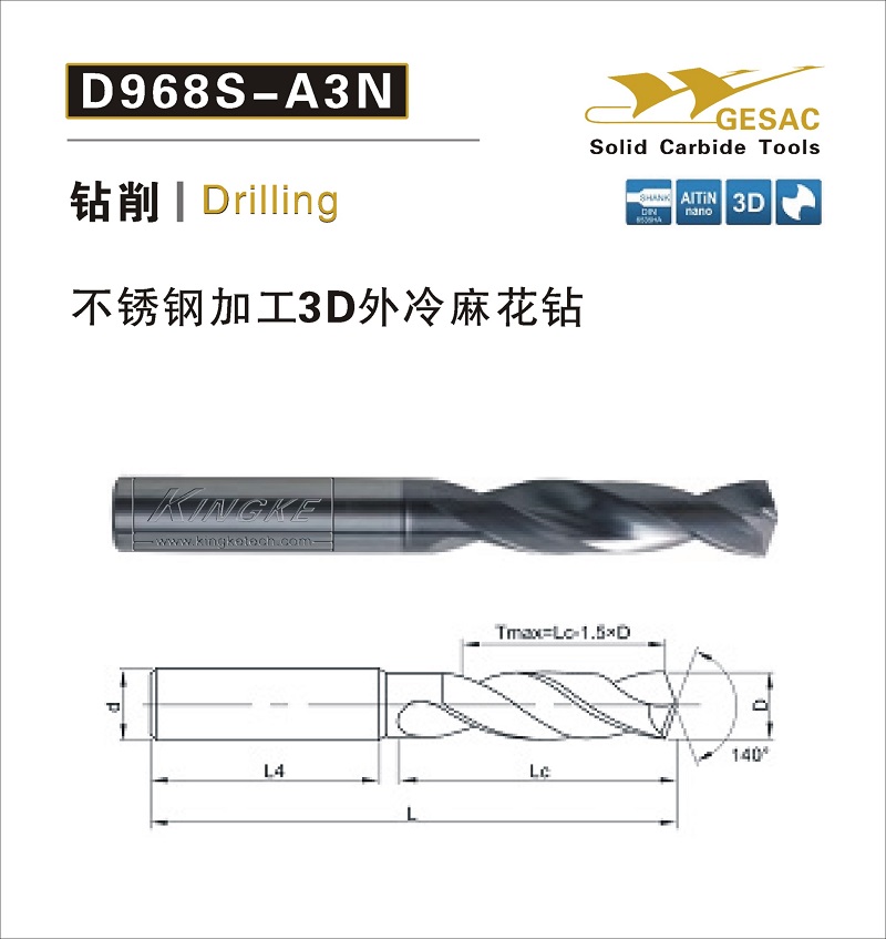 D968-A3C不銹鋼加工5D內冷麻花鉆