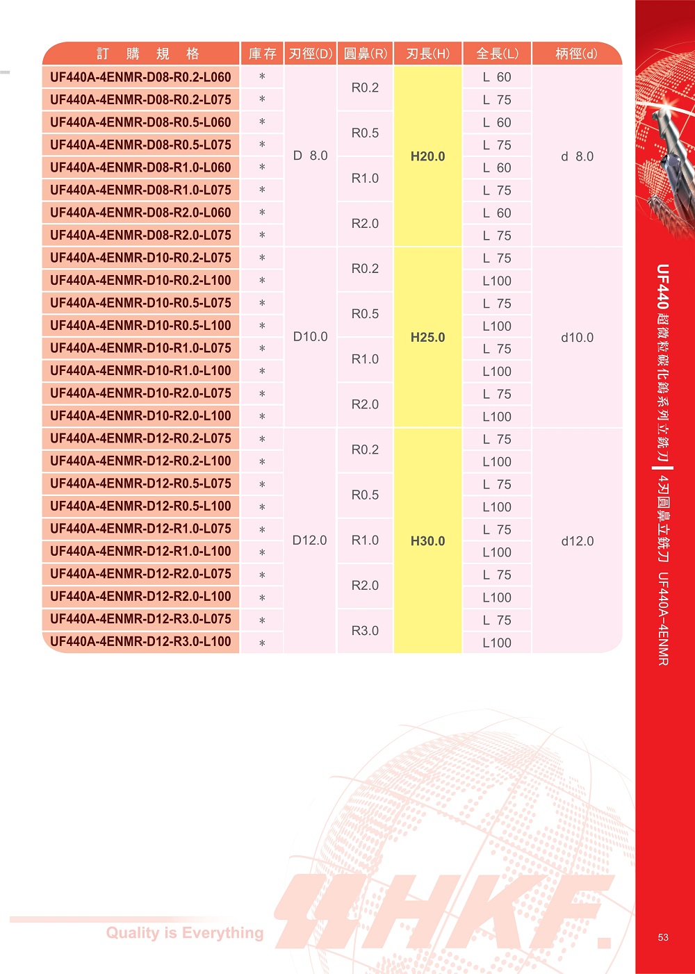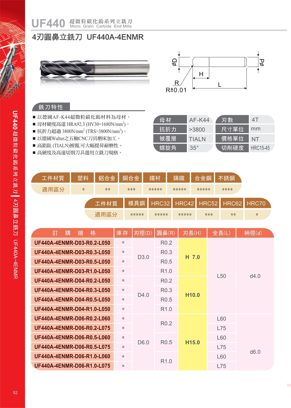 4刃圓鼻立銑刀 UF440A-4ENMR