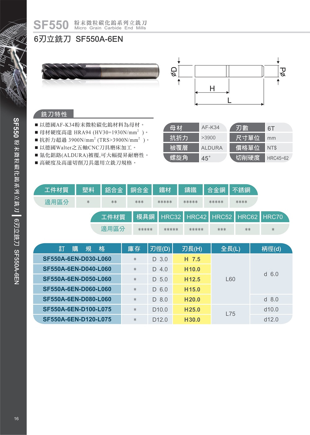 4刃圓鼻立銑刀 SF550A-4ENMR