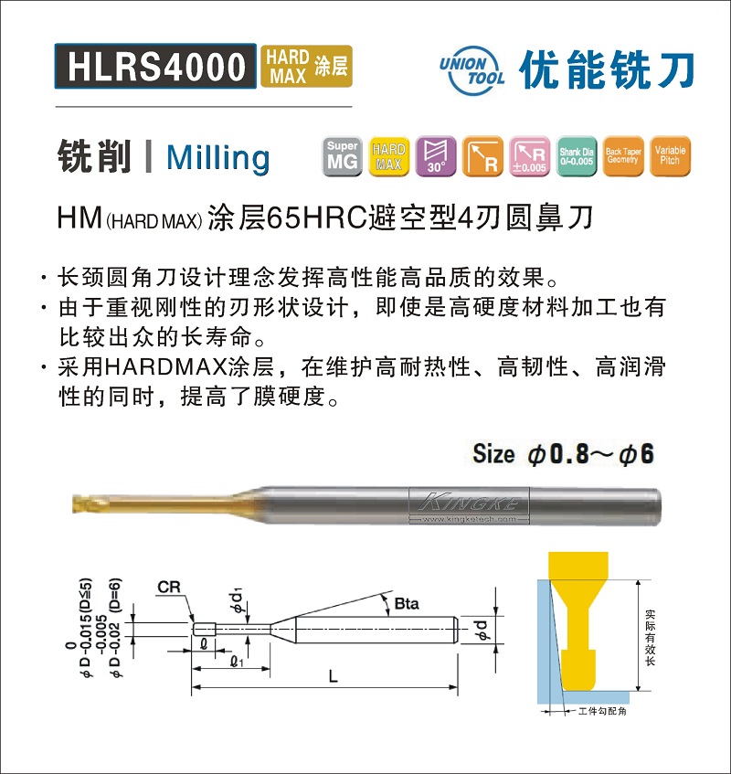 HLRS4000 HM涂層HRC65避空型4刃圓鼻刀