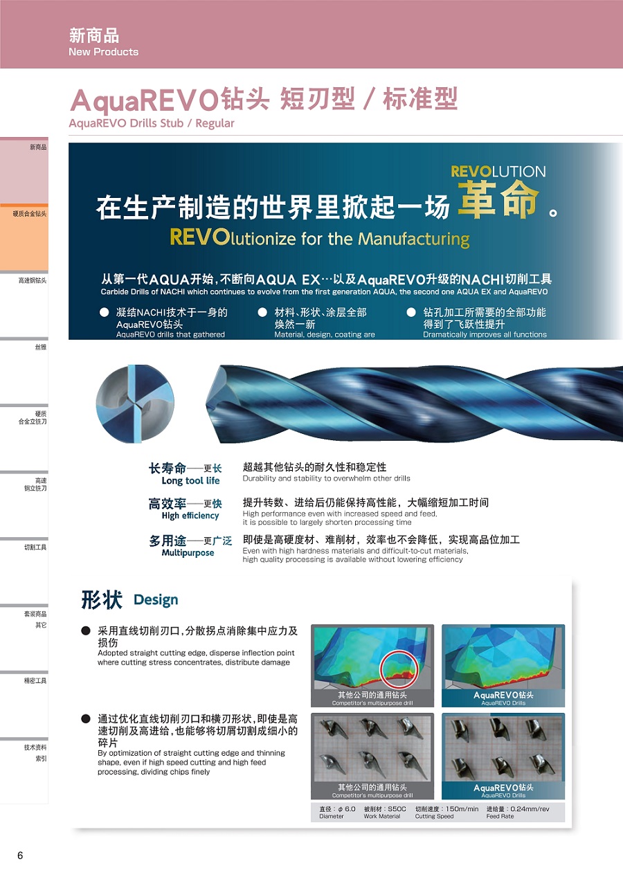 新開發(fā)的REVO-D涂層,耐酸化及耐磨損性異并采用超平滑處理,鐵屑排出更加順滑